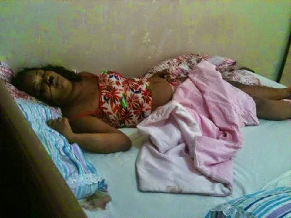 Na foto a esposa morta estirada na cama