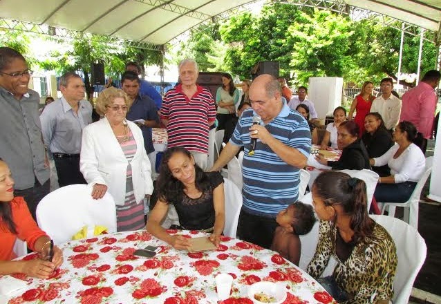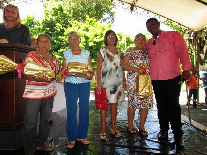 | O diretor geral administrativo e financeiro Itamilson Corrêa Lima com mães idosas ganhadoras de brindes. |