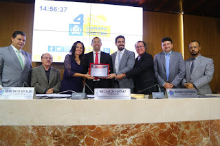 Os cento e sessenta e cinco anos de fundação da Associação Comercial e suas ações em favor do comércio, dos serviços e da indústria ao longo desse tempo no Maranhão e, em São Luís, foram comemorados nesta terça-feira, 20, pela Câmara de Vereadores. Uma sessão solene, com entrega de placa comemorativa ao presidente daquela associação, Felipe Mussalém, foi presidida pelo vereador Ricardo Diniz (PRTB), autor da proposta aprovada. Este evento antecipou em um dia a data de aniversário de fundação, que transcorre neste dia 21. O presidente da Câmara, Osmar Filho (PDT), não pôde chegar a tempo de presidir a sessão.
