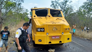 Bandidos fortemente armados com fuzis e encapuzados assaltaram no final da manhã de terça-feira (01) na MA-034 próximo ao povoado Descanso um carro forte da empresa Prosseguir que seguia para Coelho Neto MA.Segundo as primeiras informações, eles obrigaram os vigilantes a descer do carro e cair no matagal em seguida explodiram o carro forte e levaram todo o dinheiro. Os vigilantes passam bem e não houve vítimas , a MA 034 permanecia interdiata até o fechamento desta matéria .