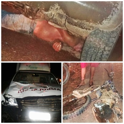 A colisão foi entre a ambulância e uma motocicleta que estava sendo conduzida pela vítima. Com o impacto , a motocicleta partiu ao meio e a vítima foi parar debaixo das rodas do veiculo e já sem vida.