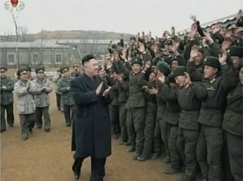 | O lider norte coreano Kim Jong-um incentivando suas tropas |
