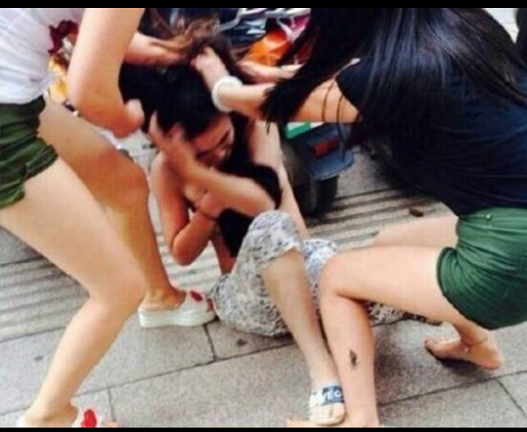 em fotos e divulgadas na internet. A mulher é acusada de ser amante do marido de uma das agressoras, que contou com a ajuda de outras amigas para desferir , socos e puxões de cabelo, além das