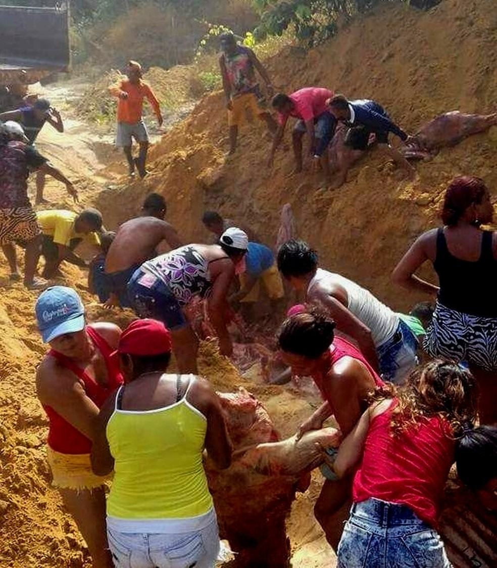 Moradores de Soure, na ilha do Marajó, no Pará,desenterraram nesta segunda-feira (25) uma carga de carne decretada imprópria