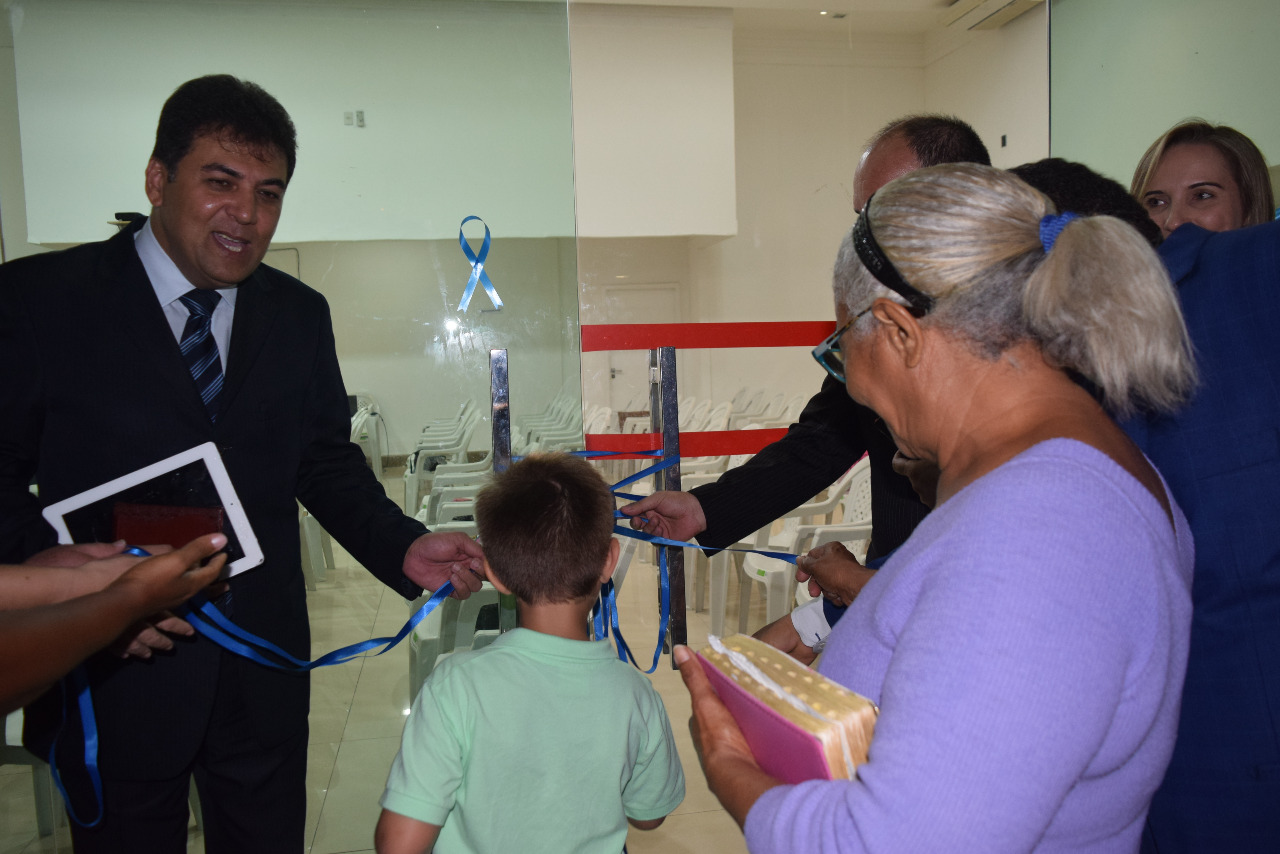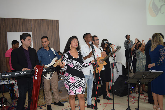 adoração a Deus em São Luís, convidando a todos para cortaram a fita,