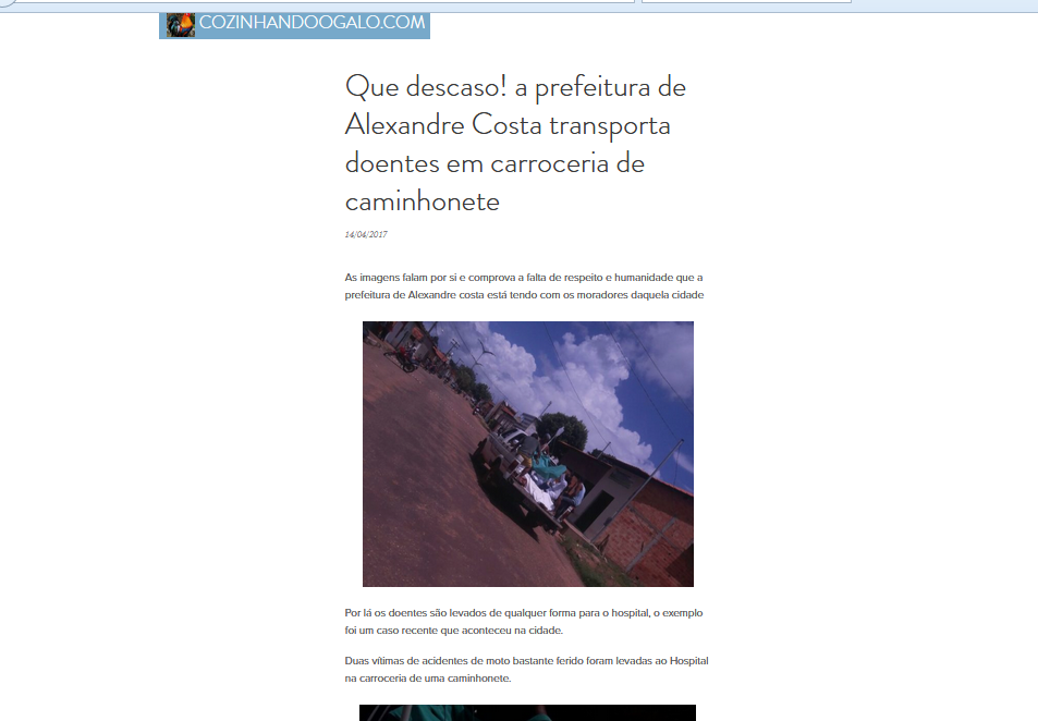 Uma denuncia chamou a atenção nas redes sociais, sobre um supostoatendimento as vitimas de acidente na cidade Senador Alexandre Costa do