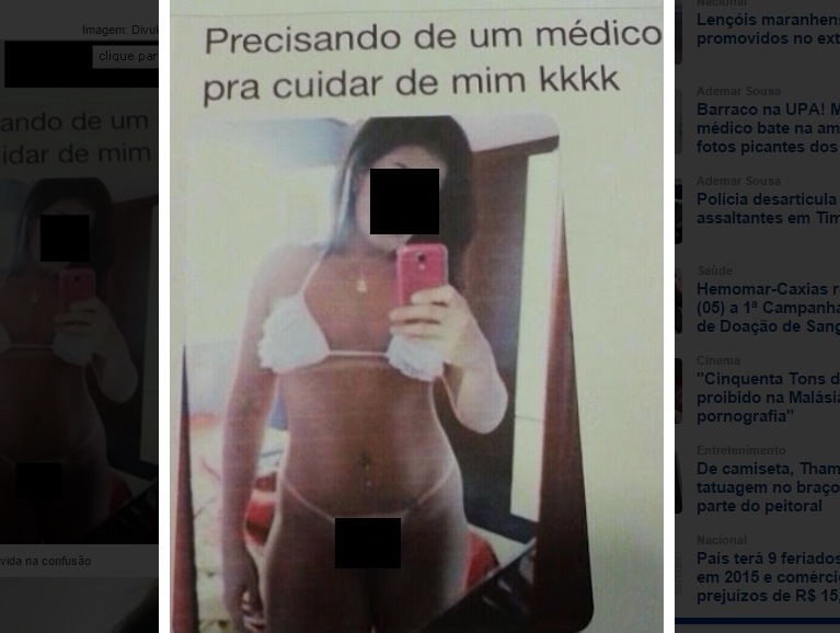 O pior é que o caso não ficou só na agressão física. A mulher traída espalha desde ontem em grupos de WhatSapp as fotos que ela encontrou no celular do marido, da técnica de enfermagem em poses picantes, fruto das conversas que o médico mantinha virtualmente com a amante e colega de trabalho.