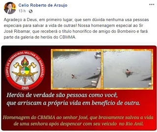 o herói foi identificado como , José Ribamar. Pelas redes sociais, e declarou que ele José de Ribamar, entrará para a galeria dos heróis dos