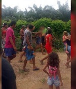 madeira na direção da mãe, atingindo-a próximo ao rim esquerdo da vítima,