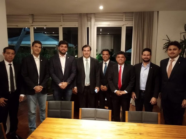 Os deputados federais eleitos do Maranhão Márcio Jerry (PCdoB), Juscelino Filho (DEM), Gil Cutrim (PDT), Edilázio Júnior (PSD), Marreca Filho (Patriota), Pastor Gildenemyr (PMN) e Eduardo Braide (PMN) participaram na noite desta terça-feira (20) de um jantar na residência oficial do presidente da Câmara dos Deputados Federais, Rodrigo Maia (DEM).