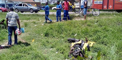 motocicleta da marca, Kawasak de placa, OCA-30 11, por volta das 13 horas, na Avenida