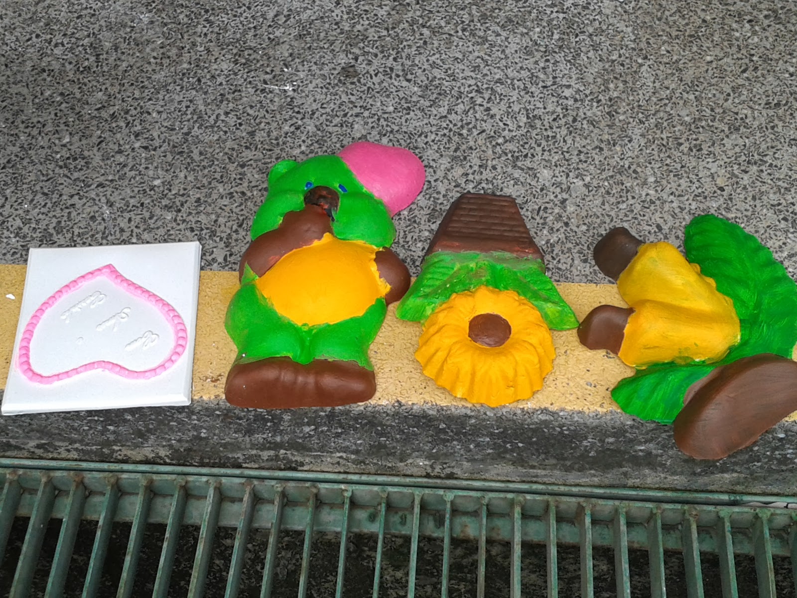 | O balde de tintas para o acabamento das esculturas |