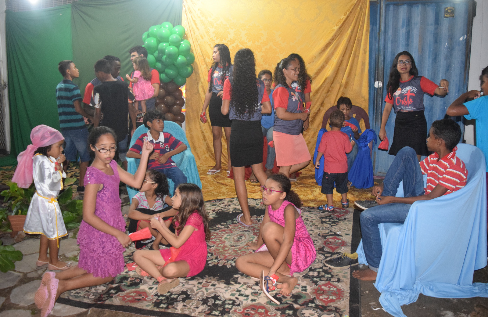 com as crianças além da equipe de apoio, de acordo com o proposito da peça.