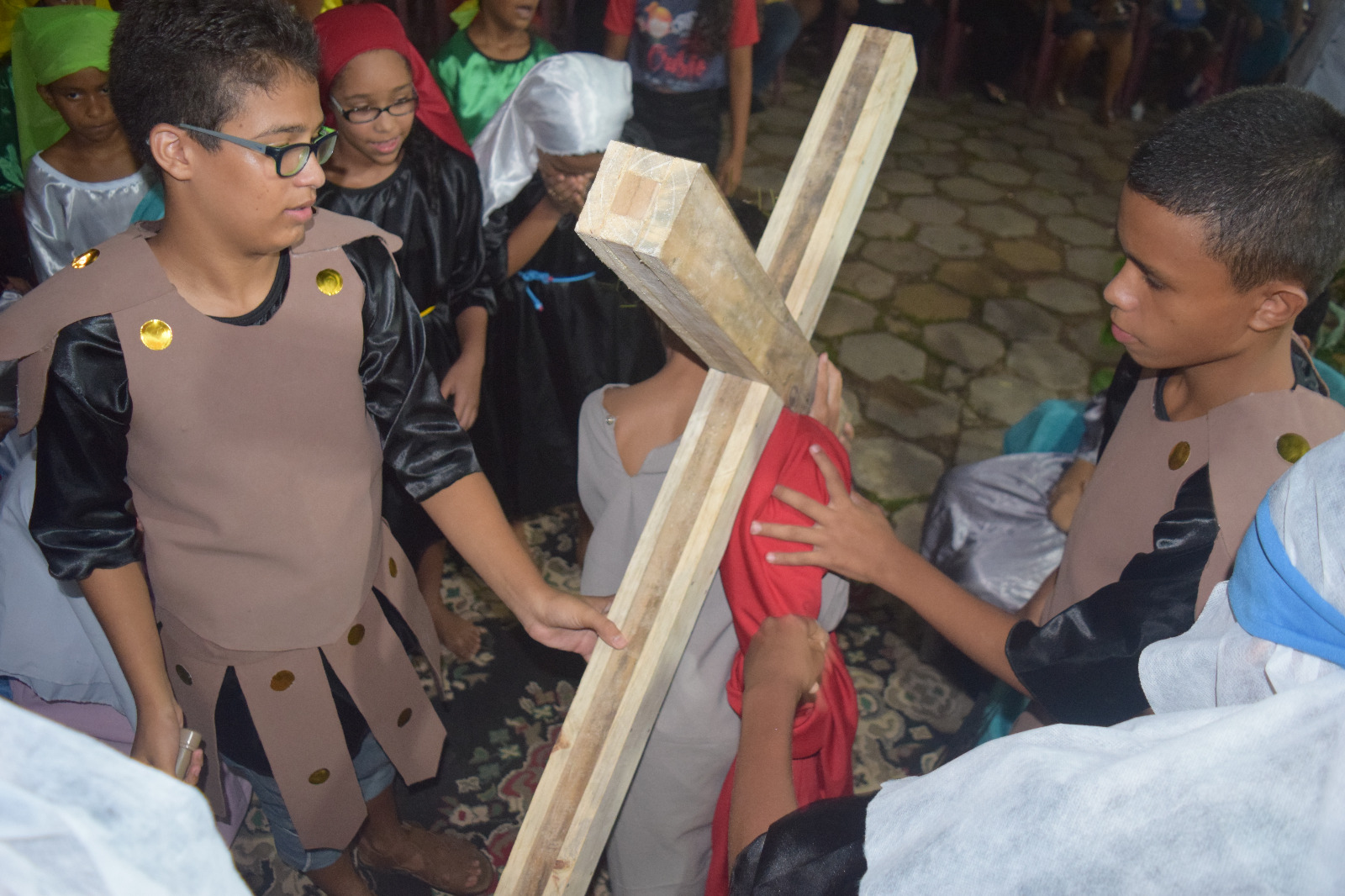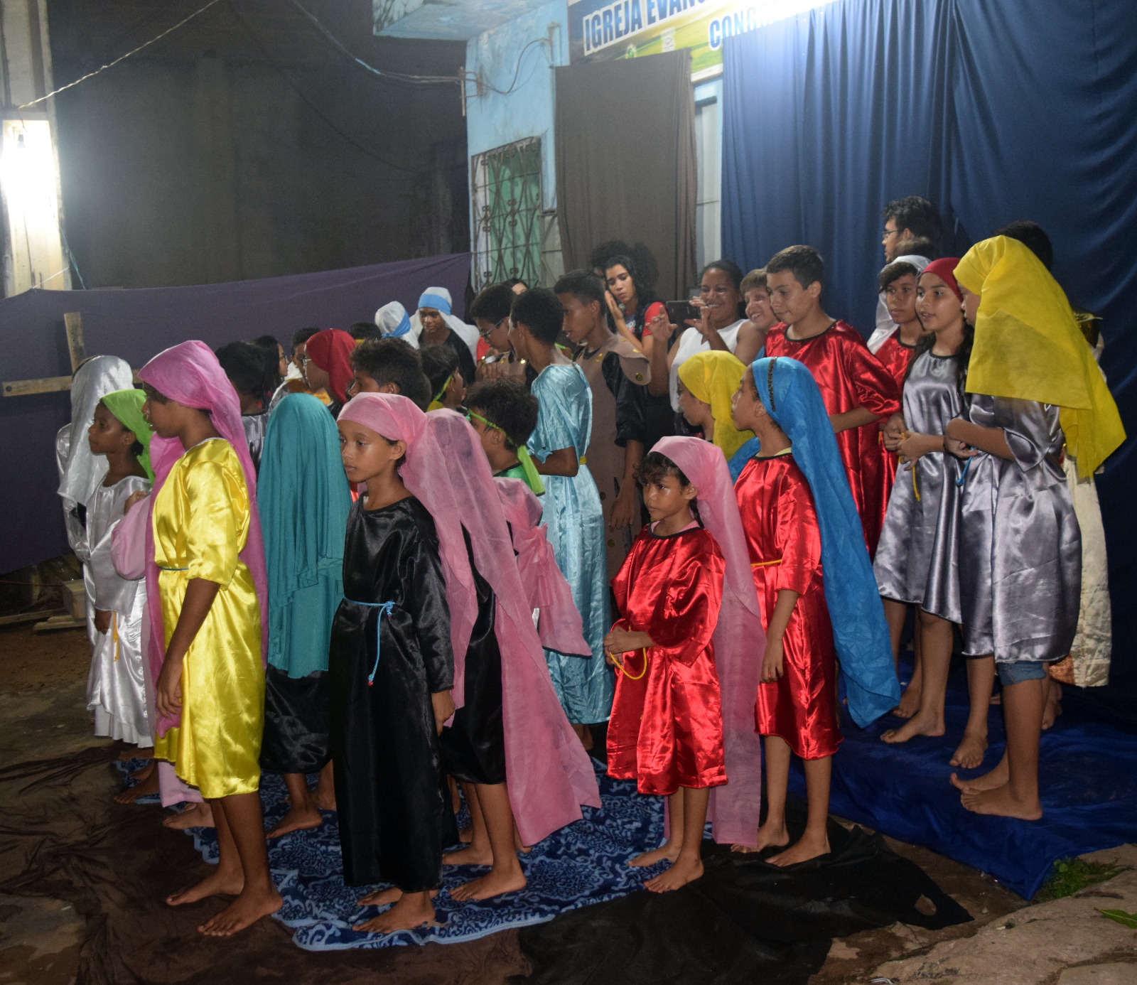 participação de várias crianças da comunidade local .