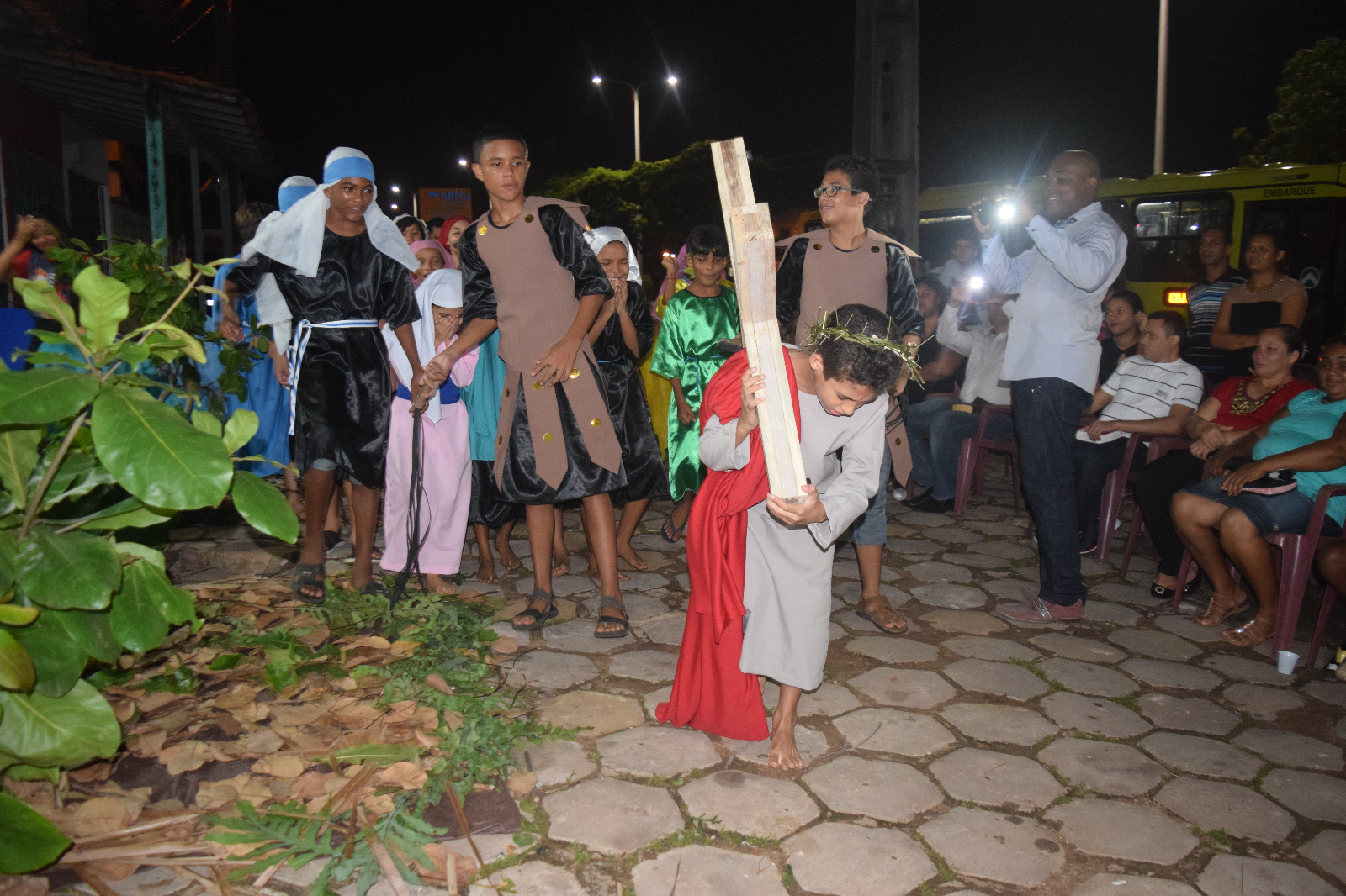 no momento em que Jesus Cristo caminha com a cruz.