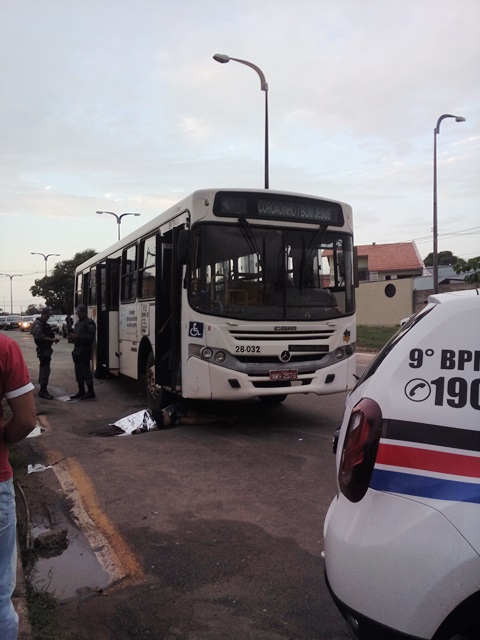 O corpo da jovem que por pouco não foi esmagado pela roda dianteira do veículo, ficou embaixo do ônibus até a chegada do IML que fez a remoção já a noite.