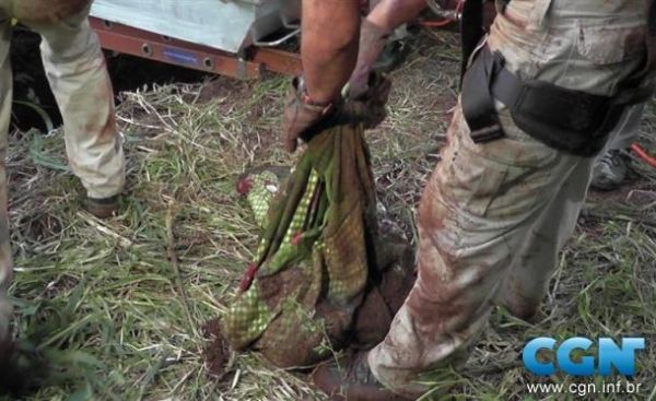 | Restos mortais de Rafaela dentro de um saco plástico |