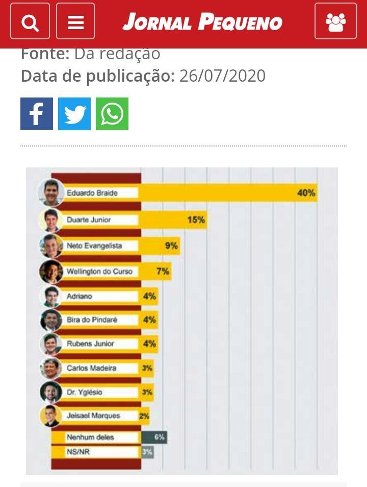O instituto JPesquisa, ligado ao Jornal Pequeno, ouviu 1.000 pessoas entre os dias 21 a 24 de julho. A margem de erro é de 3% para mais ou para menos. E o registro pelo Sistema Pesqele, do Tribunal Superior Eleitoral (TSE), sob o protocolo n° MA-02519/2020, foi feito no dia 19 de julho de 2020.