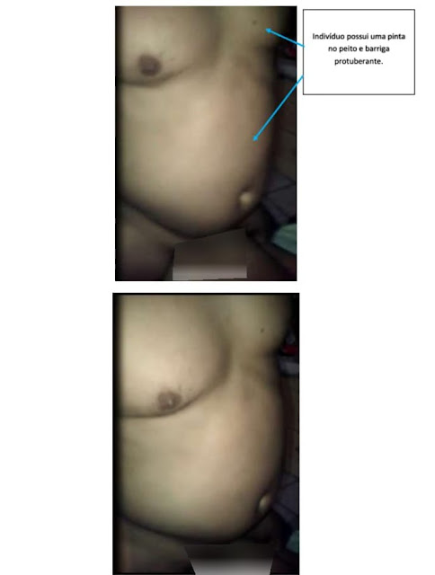 Nas fotos há informações que devem ser lidas para facilitar a compreensão e identificação do criminoso, ora foragido.