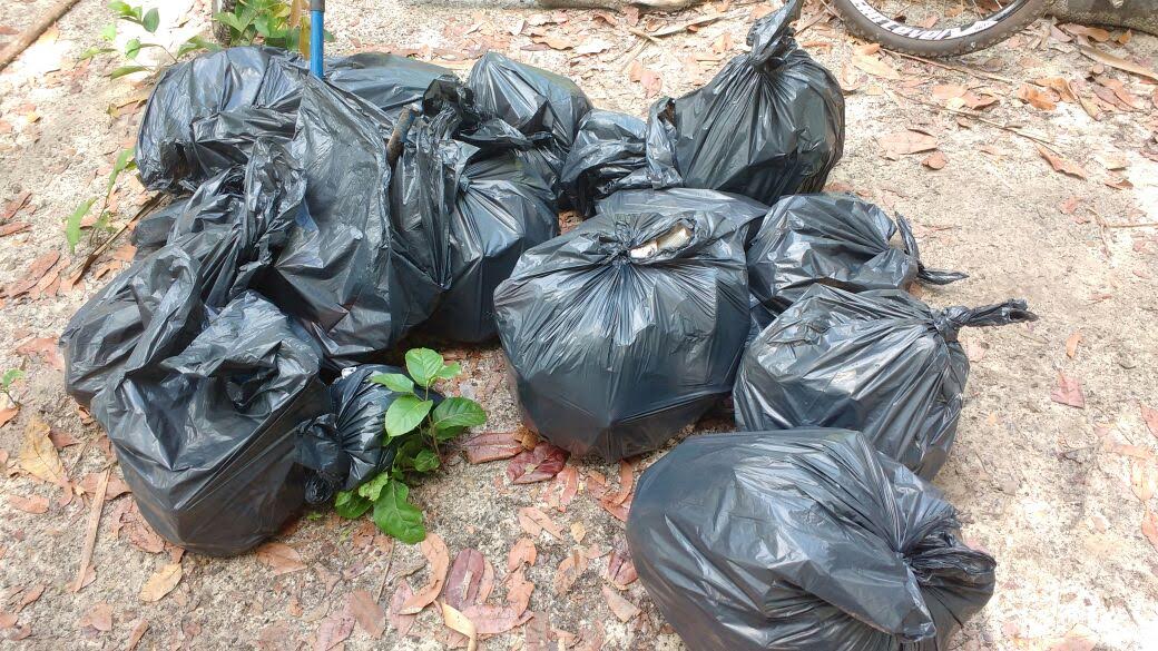 foi ensacado para ser coletado pelo transporte de limpeza pública da cidade.