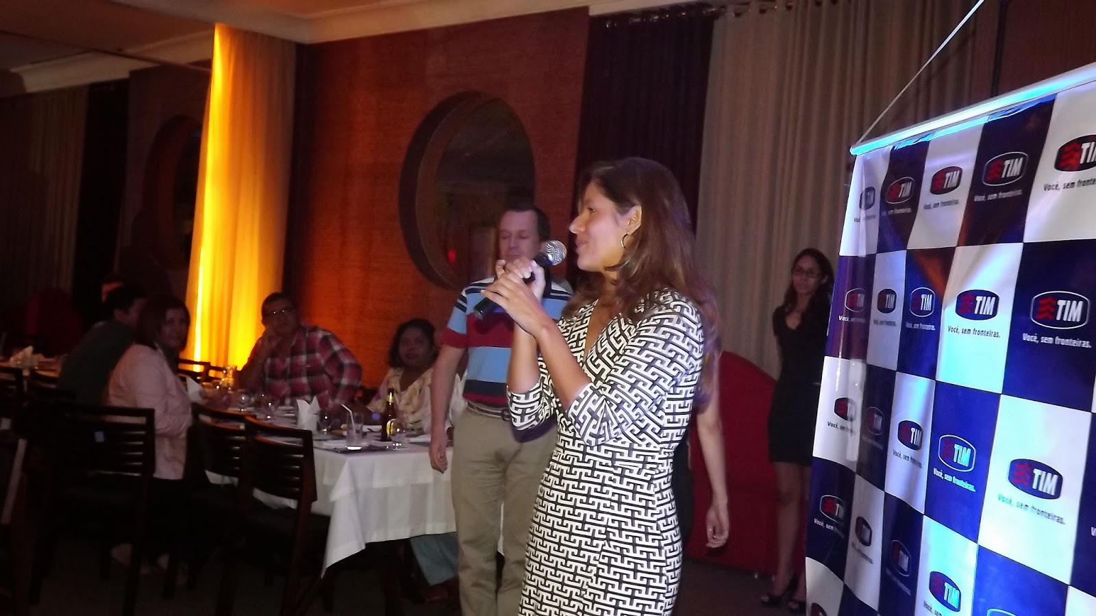 | A gerente da Tim dando as boas vindas |