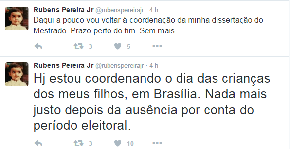 Foram duas tuitadas dados pelo parlamentar sobre coordenações, conforme print abaixo: