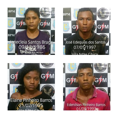 Durante a abordagem, Elaine recebia uma ligação de sua tia, identificada como  Janecleia Santos Braga 29 anos, Elaine foi obrigada a pôr o celular em viva voz, onde os policias tiveram a certeza que se tratava de uma quadrilha, onde tinha mais pessoas envolvidas aguardando o táxi, na entrada do povoado Vila Mãe Chica / Maracanã. Com a ligação em andamento, os policiais seguiram o taxis até o ponto combinado por elas, onde se encontravam mais 4 elementos, sendo dois identificados  como – José Dequias dos Santos 18 anos e – Edenilson Pinheiro Barros 22 anos, Janecleia se atravessou na frente do taxi, mais  quando viu que se tratava da PM, tratou logo de jogar um saco contendo a droga para dentro do veículo,  atitude observada pelo sgt, e mais um sexto elemento que conseguiu fugir após avistar as viaturas e não foi possível localizá-lo devido ao local ser de mata fechada, que após o revista no local encontramos os outros dois elementos escondidos, deitados no mato.Os conduzidos foram apresentados no Plantão do 16º DP sem lesões corporais, para serem tomadas as medidas cabíveis onde foram ouvidos pelo delegado de plantão .