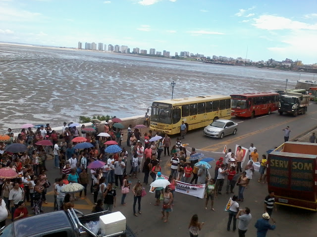 | Os manifestantes causaram um enorme engarrafamento na Avenida Beira -Mar |