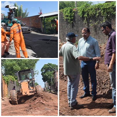 | Rua do Paraíso no bairro Gancharia recebendo asfalto |