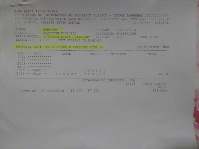 Há exemplo podemos citar a pick-up Hilux, de cor preta, placa PSB-8489, locada pela Prefeitura junto à empresa HTT Construções e Empreendimentos LTDA e que há pouco mais de um ano vem sendo usada pelo próprio prefeito. O veículo não possui qualquer símbolo que identifique a Prefeitura, muito embora, o Executivo pague a bagatela de R$7.500,00 por mês.