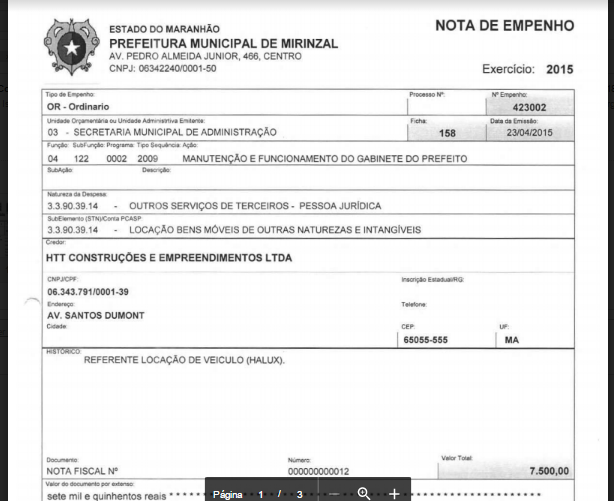 E olha que essa situação não é das mais graves das detectadas. No ano de 2013, a Prefeitura locou junto à empresa EME Serviços Gerais Ltda., um veículo Freemont, que também era usado como se do prefeito fosse. Contudo, o contrato permaneceu sendo, regulamente renovado, conforme notas fiscais, durante todo o ano de 2014, mesmo o veículo não tendo sido mais visto no município.
