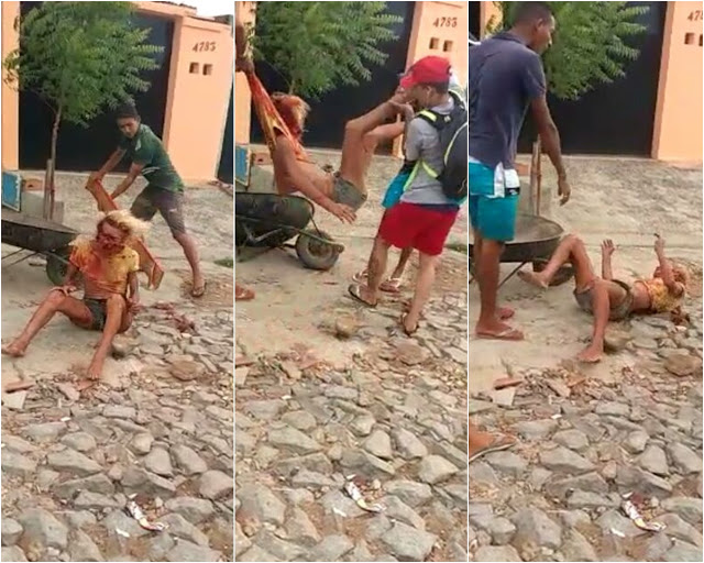 colocam a vítima no carrinho de mão e descem a rua. Em seguida, a vítima