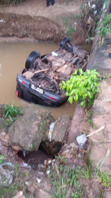 O motorista, o advogado Dr. Vando, ficou preso dentro do veículo emborcado e com as águas do igarapé até a metade.